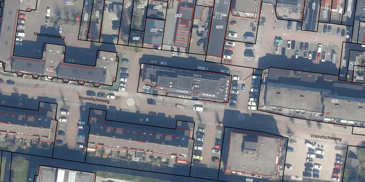 Voorofscheweg 15-D is gelegen op kadastraal perceel BKP00D3446. Deze kadastrale aanduiding is uniek en wordt gebruikt door het Kadaster om eigendomsrechten en andere zakelijke rechten vast te leggen. Het perceel maakt onderdeel uit van de kadastrale gemeente Boskoop.