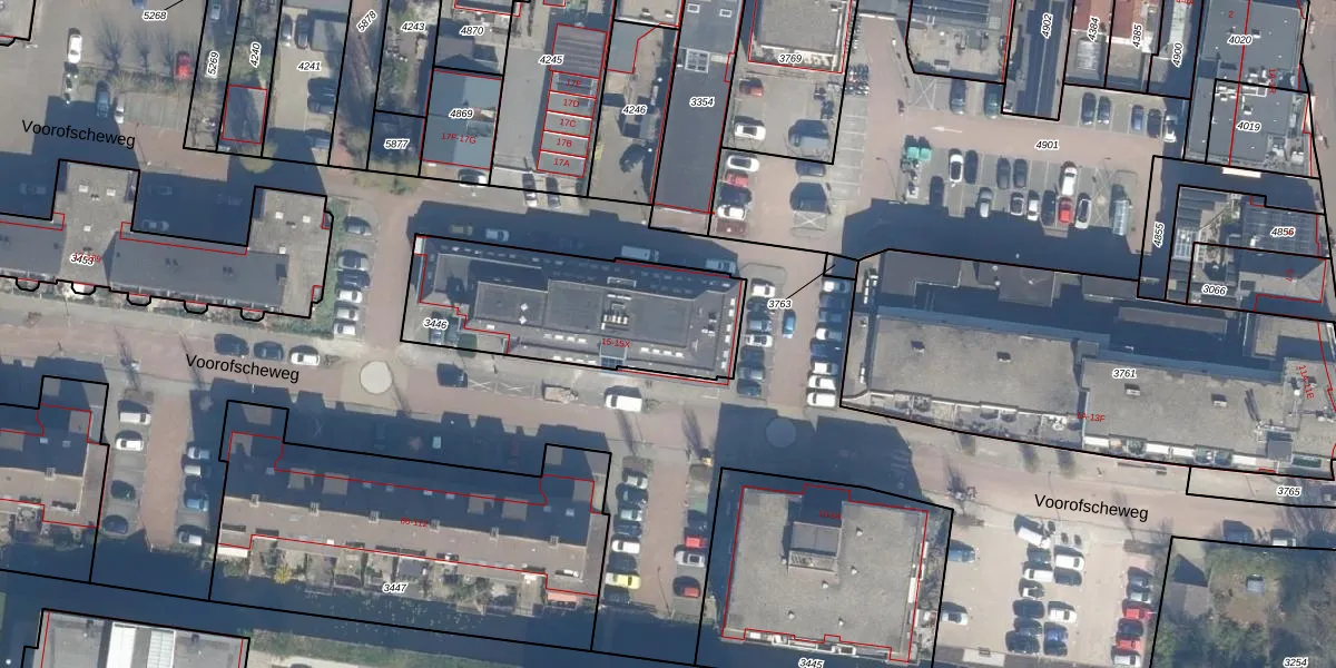 Voorofscheweg 15-H is gelegen op kadastraal perceel BKP00D3446. Deze kadastrale aanduiding is uniek en wordt gebruikt door het Kadaster om eigendomsrechten en andere zakelijke rechten vast te leggen. Het perceel maakt onderdeel uit van de kadastrale gemeente Boskoop.