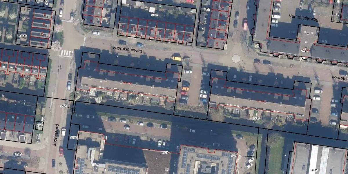Voorofscheweg 162 is gelegen op kadastraal perceel BKP00D3449. Deze kadastrale aanduiding is uniek en wordt gebruikt door het Kadaster om eigendomsrechten en andere zakelijke rechten vast te leggen. Het perceel maakt onderdeel uit van de kadastrale gemeente Boskoop.
