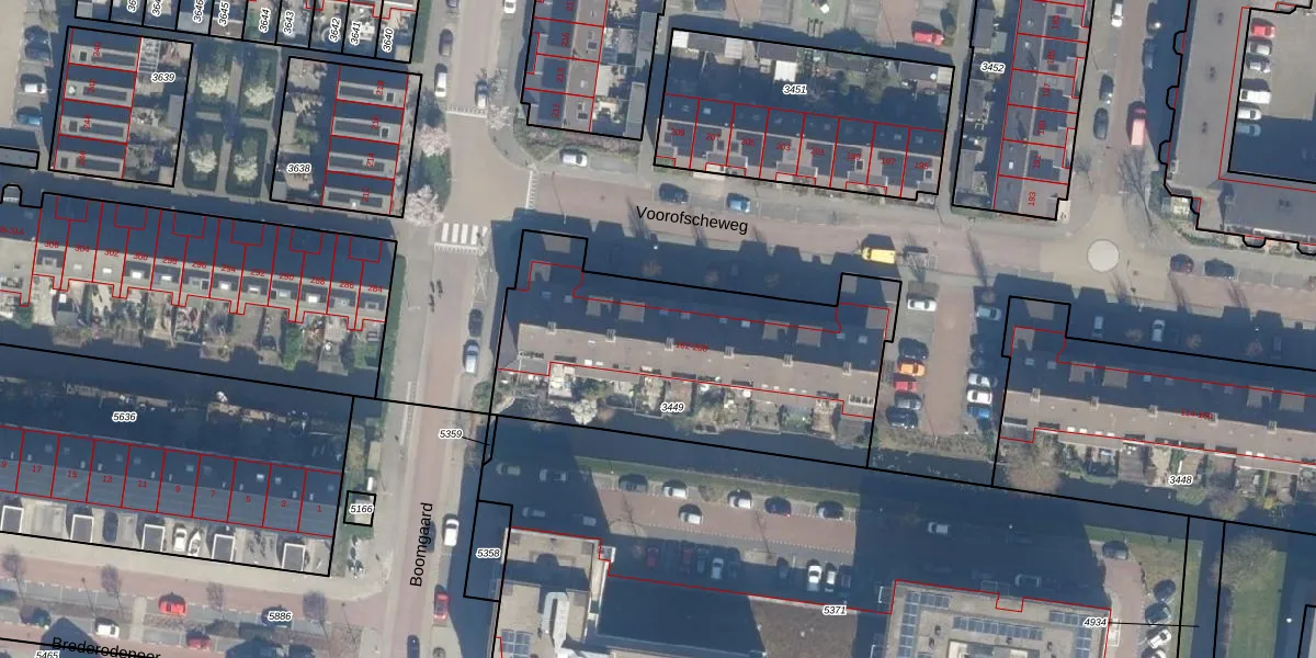 Voorofscheweg 176 is gelegen op kadastraal perceel BKP00D3449. Deze kadastrale aanduiding is uniek en wordt gebruikt door het Kadaster om eigendomsrechten en andere zakelijke rechten vast te leggen. Het perceel maakt onderdeel uit van de kadastrale gemeente Boskoop.