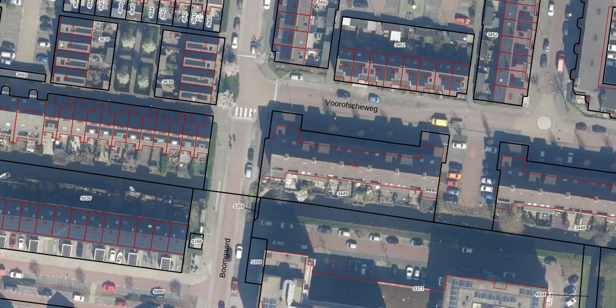 Voorofscheweg 180 is gelegen op kadastraal perceel BKP00D3449. Deze kadastrale aanduiding is uniek en wordt gebruikt door het Kadaster om eigendomsrechten en andere zakelijke rechten vast te leggen. Het perceel maakt onderdeel uit van de kadastrale gemeente Boskoop.