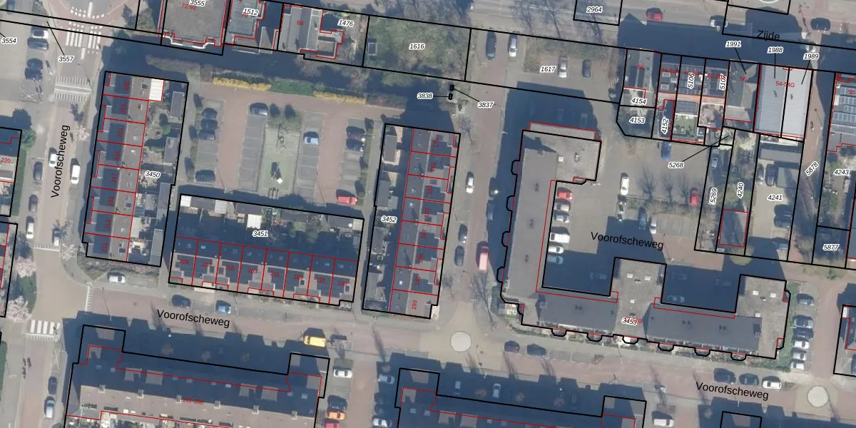 Voorofscheweg 185 is gelegen op kadastraal perceel BKP00D3452. Deze kadastrale aanduiding is uniek en wordt gebruikt door het Kadaster om eigendomsrechten en andere zakelijke rechten vast te leggen. Het perceel maakt onderdeel uit van de kadastrale gemeente Boskoop.