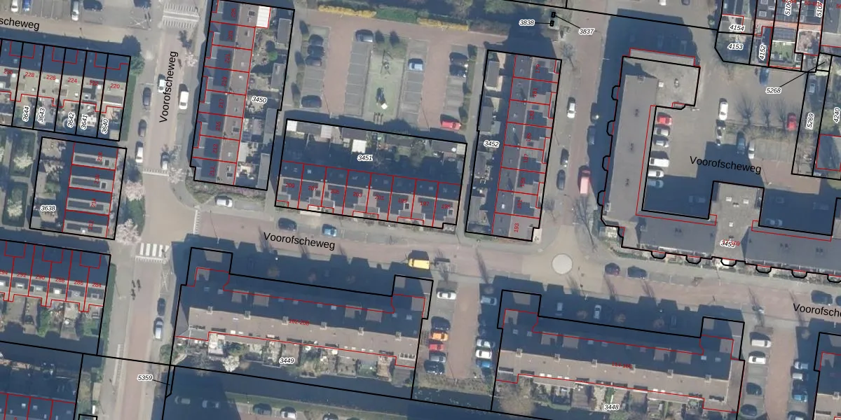 Voorofscheweg 197 is gelegen op kadastraal perceel BKP00D3451. Deze kadastrale aanduiding is uniek en wordt gebruikt door het Kadaster om eigendomsrechten en andere zakelijke rechten vast te leggen. Het perceel maakt onderdeel uit van de kadastrale gemeente Boskoop.