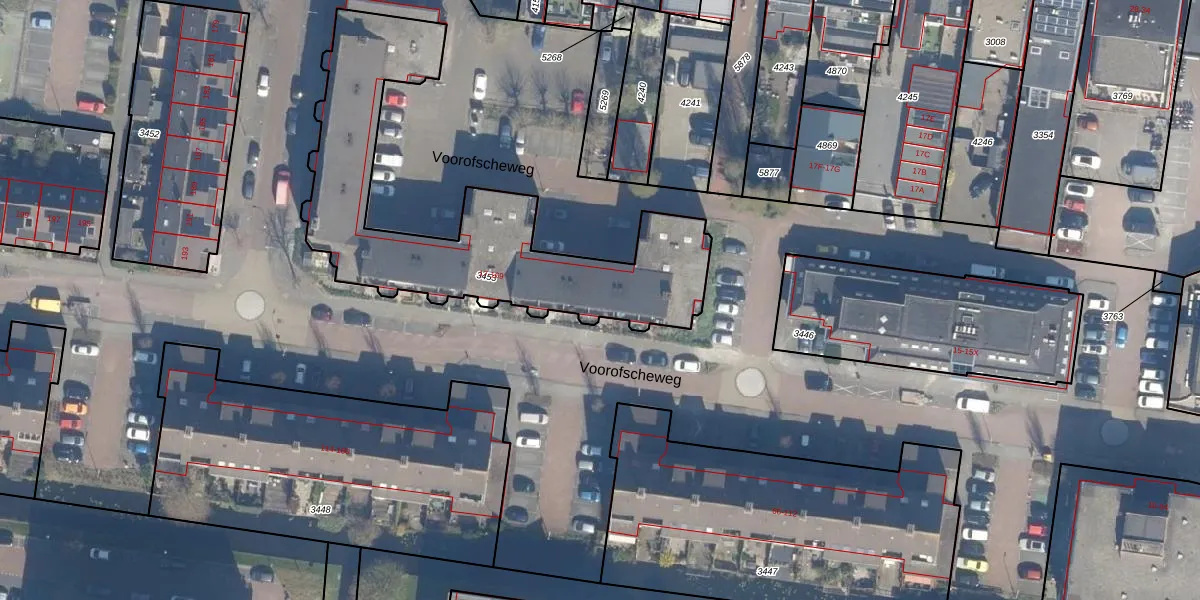 Voorofscheweg 23 is gelegen op kadastraal perceel BKP00D3453. Deze kadastrale aanduiding is uniek en wordt gebruikt door het Kadaster om eigendomsrechten en andere zakelijke rechten vast te leggen. Het perceel maakt onderdeel uit van de kadastrale gemeente Boskoop.
