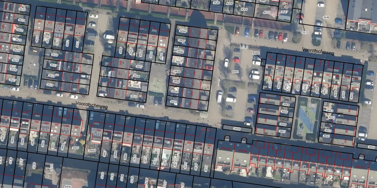 Gebruik de zoekbalk of klik op een perceel voor informatie over de adressen binnen dit perceel.