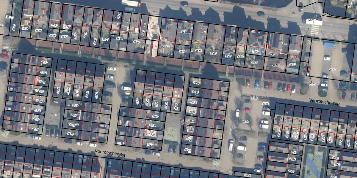 Voorofscheweg 259 is gelegen op kadastraal perceel BKP00D3502. Deze kadastrale aanduiding is uniek en wordt gebruikt door het Kadaster om eigendomsrechten en andere zakelijke rechten vast te leggen. Het perceel maakt onderdeel uit van de kadastrale gemeente Boskoop.
