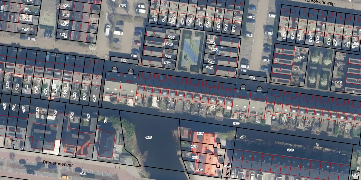 Het adres ligt op het perceel BKP00-D-3670, dat zich in de kadastrale gemeente Boskoop bevindt. De oppervlakte van het perceel is 3250 m². Dat is groter dan gemiddeld in Boskoop, waar de gemiddelde perceeloppervlakte op 1875 m² ligt. Het grootste perceel in de kadastrale gemeente is 20,7 ha. Het kleinste perceel heeft een oppervlakte van 0 m². Er zijn 40 adressen aanwezig op het perceel. In de Basisregistratie Kadaster (BRK) werden de grenzen van het perceel geregistreerd op 01-04-2022.