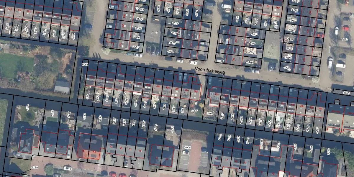 Gebruik de zoekbalk of klik op een perceel voor informatie over de adressen binnen dit perceel.