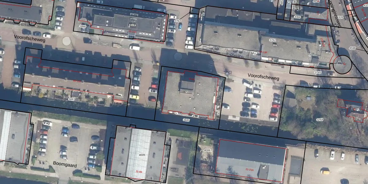 Voorofscheweg 42 is gelegen op kadastraal perceel BKP00D3445. Deze kadastrale aanduiding is uniek en wordt gebruikt door het Kadaster om eigendomsrechten en andere zakelijke rechten vast te leggen. Het perceel maakt onderdeel uit van de kadastrale gemeente Boskoop.
