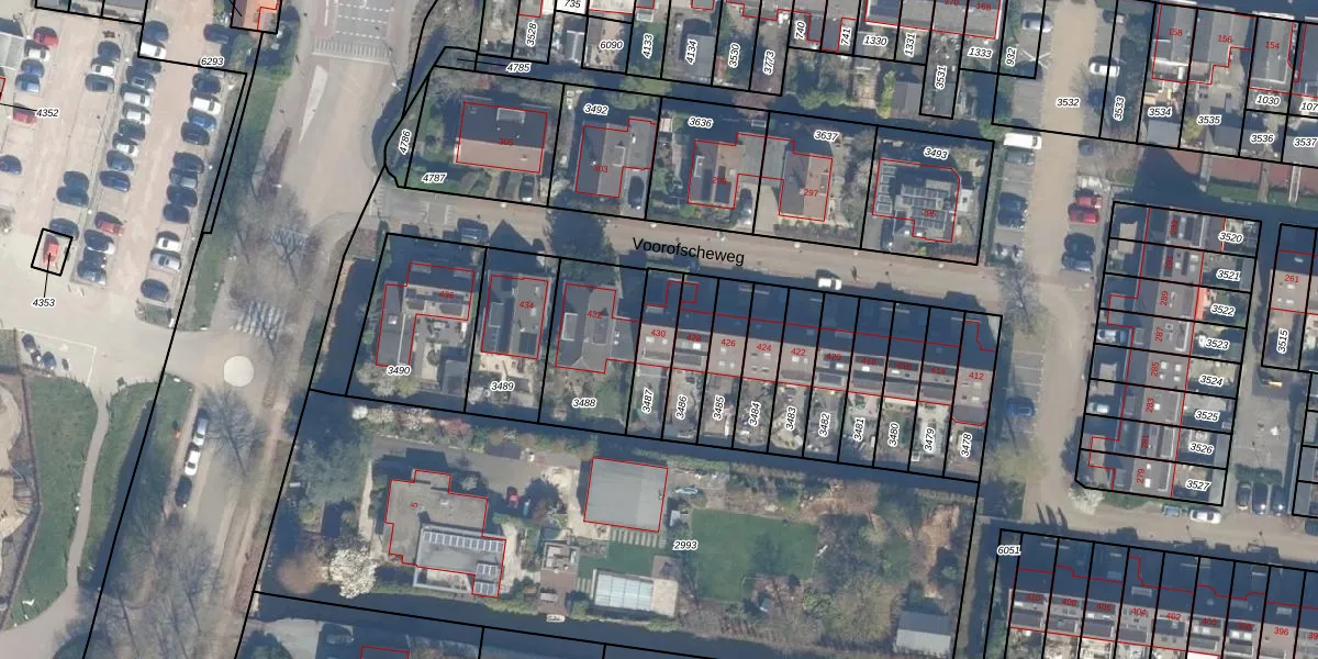 Voorofscheweg 430 is gelegen op kadastraal perceel BKP00D3487. Deze kadastrale aanduiding is uniek en wordt gebruikt door het Kadaster om eigendomsrechten en andere zakelijke rechten vast te leggen. Het perceel maakt onderdeel uit van de kadastrale gemeente Boskoop.