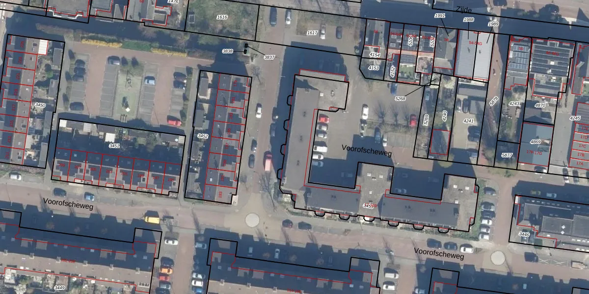 Voorofscheweg 49 is gelegen op kadastraal perceel BKP00D3453. Deze kadastrale aanduiding is uniek en wordt gebruikt door het Kadaster om eigendomsrechten en andere zakelijke rechten vast te leggen. Het perceel maakt onderdeel uit van de kadastrale gemeente Boskoop.