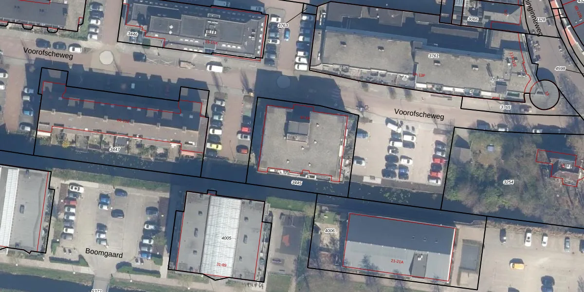 Voorofscheweg 56 is gelegen op kadastraal perceel BKP00D3445. Deze kadastrale aanduiding is uniek en wordt gebruikt door het Kadaster om eigendomsrechten en andere zakelijke rechten vast te leggen. Het perceel maakt onderdeel uit van de kadastrale gemeente Boskoop.