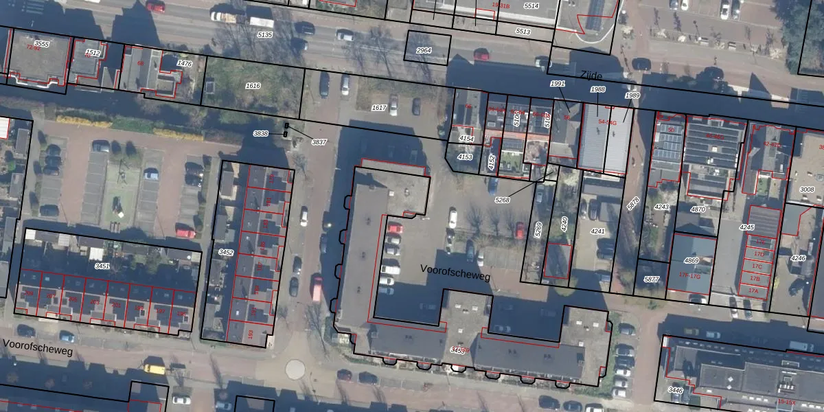 Voorofscheweg 61 is gelegen op kadastraal perceel BKP00D3453. Deze kadastrale aanduiding is uniek en wordt gebruikt door het Kadaster om eigendomsrechten en andere zakelijke rechten vast te leggen. Het perceel maakt onderdeel uit van de kadastrale gemeente Boskoop.