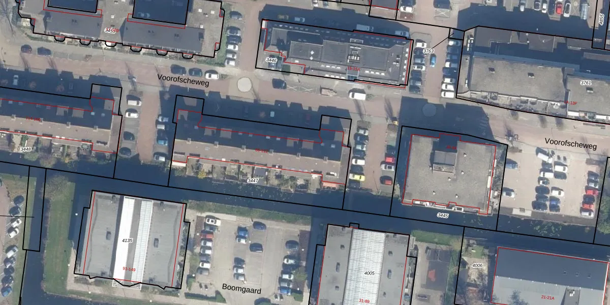 Voorofscheweg 70 is gelegen op kadastraal perceel BKP00D3447. Deze kadastrale aanduiding is uniek en wordt gebruikt door het Kadaster om eigendomsrechten en andere zakelijke rechten vast te leggen. Het perceel maakt onderdeel uit van de kadastrale gemeente Boskoop.