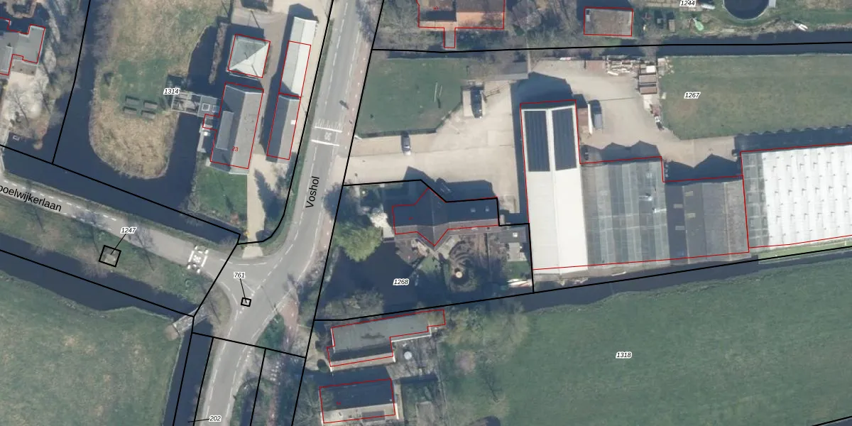 Voshol 1 is gelegen op kadastraal perceel BKP00K1268. Deze kadastrale aanduiding is uniek en wordt gebruikt door het Kadaster om eigendomsrechten en andere zakelijke rechten vast te leggen. Het perceel maakt onderdeel uit van de kadastrale gemeente Boskoop.