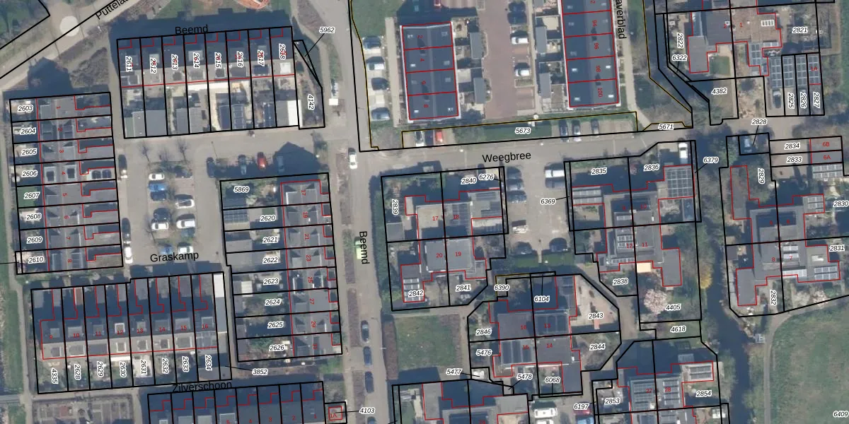 Gebruik de zoekbalk of klik op een perceel voor informatie over de adressen binnen dit perceel.