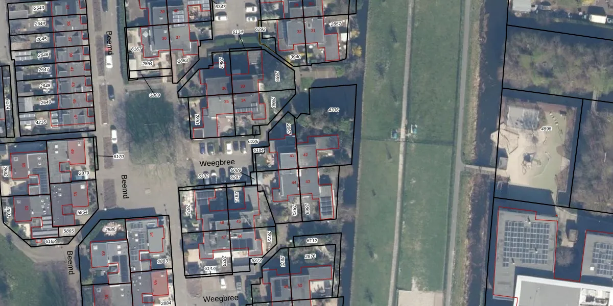 Het perceel waarop Weegbree 42 staat heeft een oppervlakte van 455 m². Dit is een groot perceel. De perceeloppervlakte wordt geregistreerd door het Kadaster. Gedetailleerde informatie over de maten van dit perceel kunt u vinden in het rapport Kadastrale kaart met maatvoering van Weegbree 42.