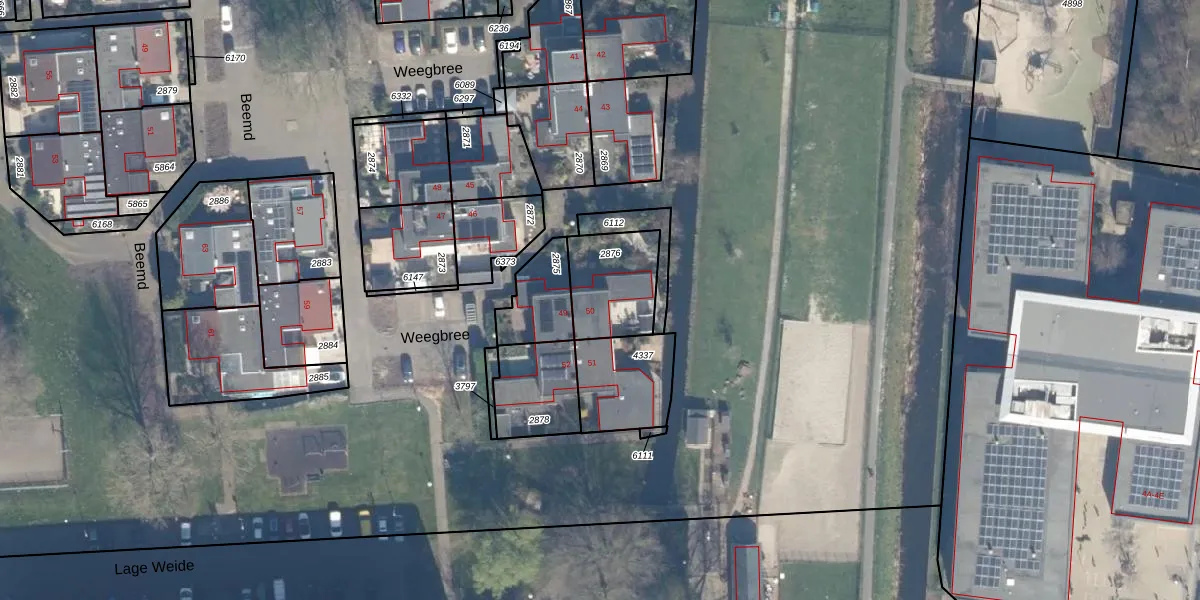 Gebruik de zoekbalk of klik op een perceel voor informatie over de adressen binnen dit perceel.
