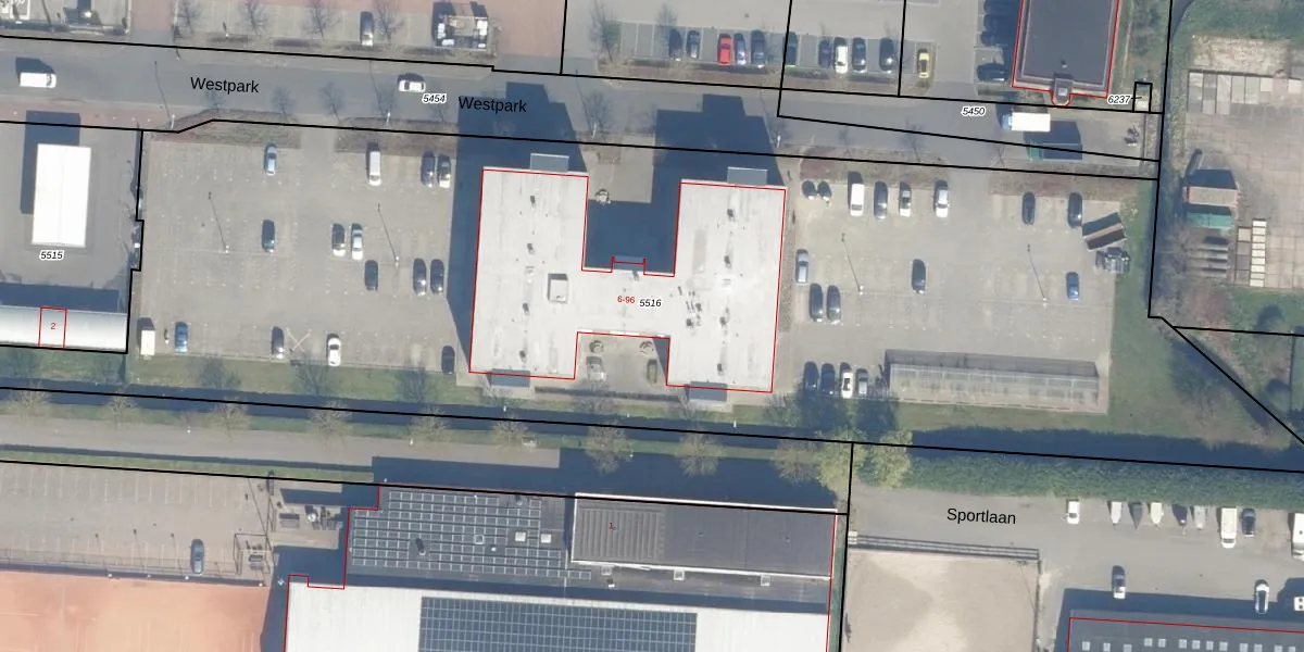 Het perceel waarop Westpark 82 staat heeft een oppervlakte van 7220 m². Dit is een zeer groot perceel. De perceeloppervlakte wordt geregistreerd door het Kadaster. Gedetailleerde informatie over de maten van dit perceel kunt u vinden in het rapport Kadastrale kaart met maatvoering van Westpark 82.