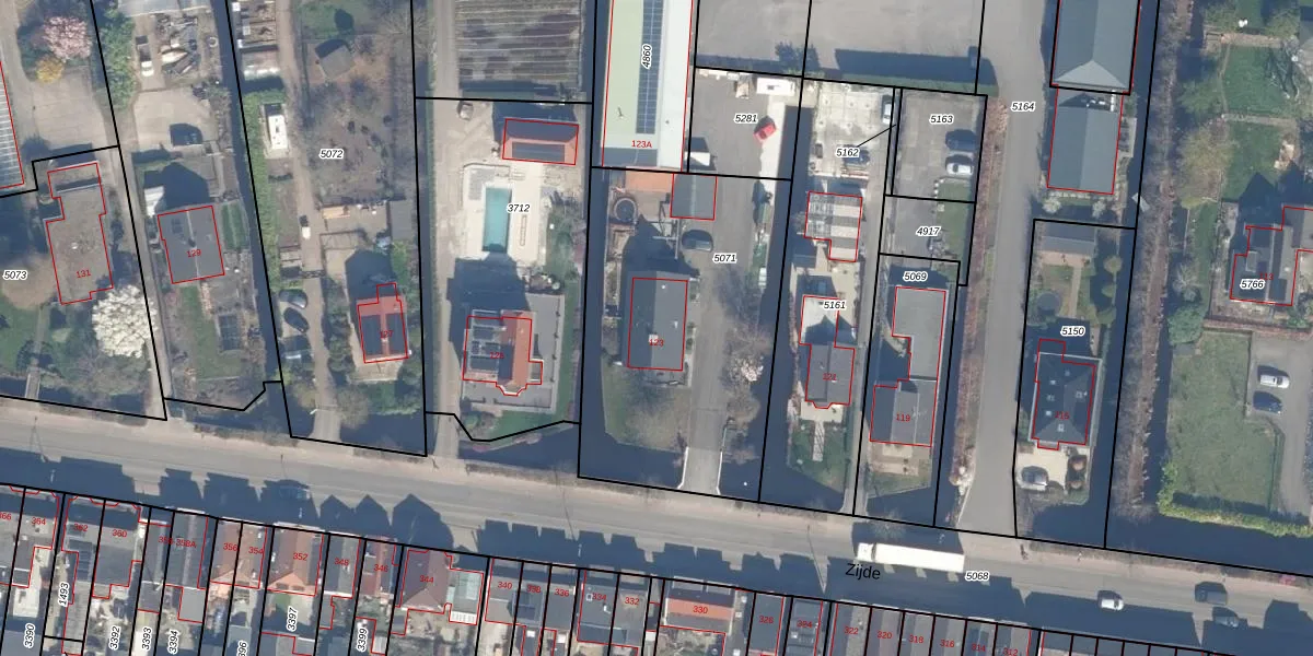 Het perceel waarop Zijde 123 staat heeft een oppervlakte van 1453 m². Dit is een zeer groot perceel. De perceeloppervlakte wordt geregistreerd door het Kadaster. Gedetailleerde informatie over de maten van dit perceel kunt u vinden in het rapport Kadastrale kaart met maatvoering van Zijde 123.