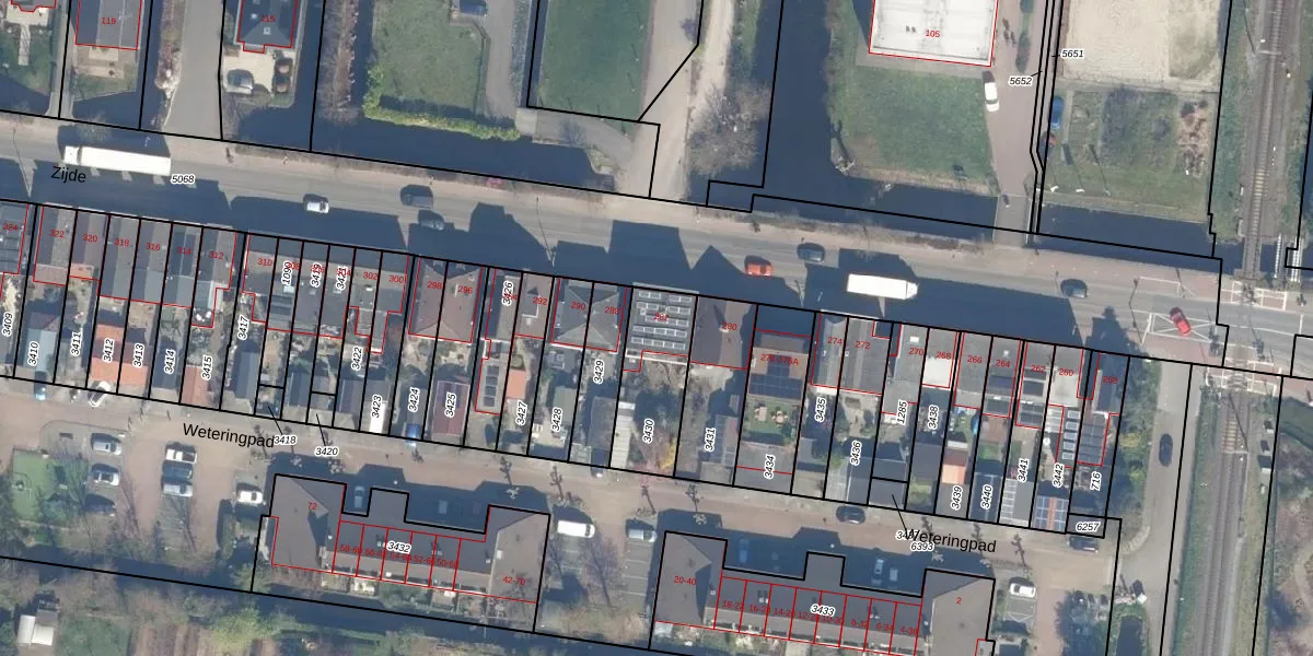 Gebruik de zoekbalk of klik op een perceel voor informatie over de adressen binnen dit perceel.