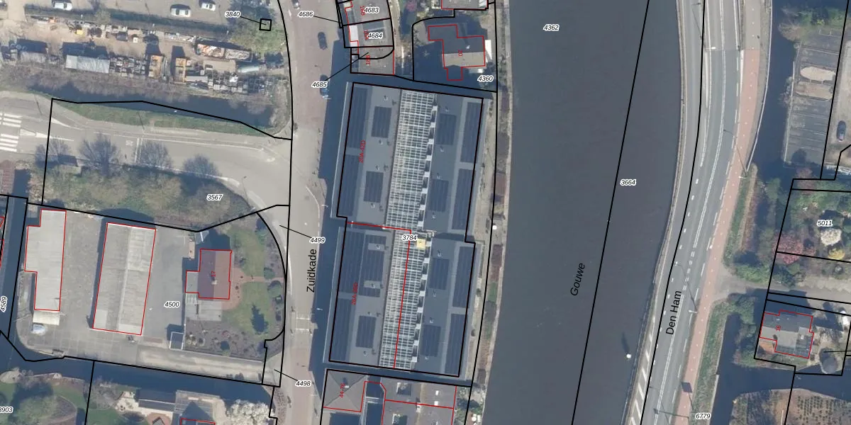 Het perceel waarop Zuidkade 20-A staat heeft een oppervlakte van 2013 m². Dit is een zeer groot perceel. De perceeloppervlakte wordt geregistreerd door het Kadaster. Gedetailleerde informatie over de maten van dit perceel kunt u vinden in het rapport Kadastrale kaart met maatvoering van Zuidkade 20-A.