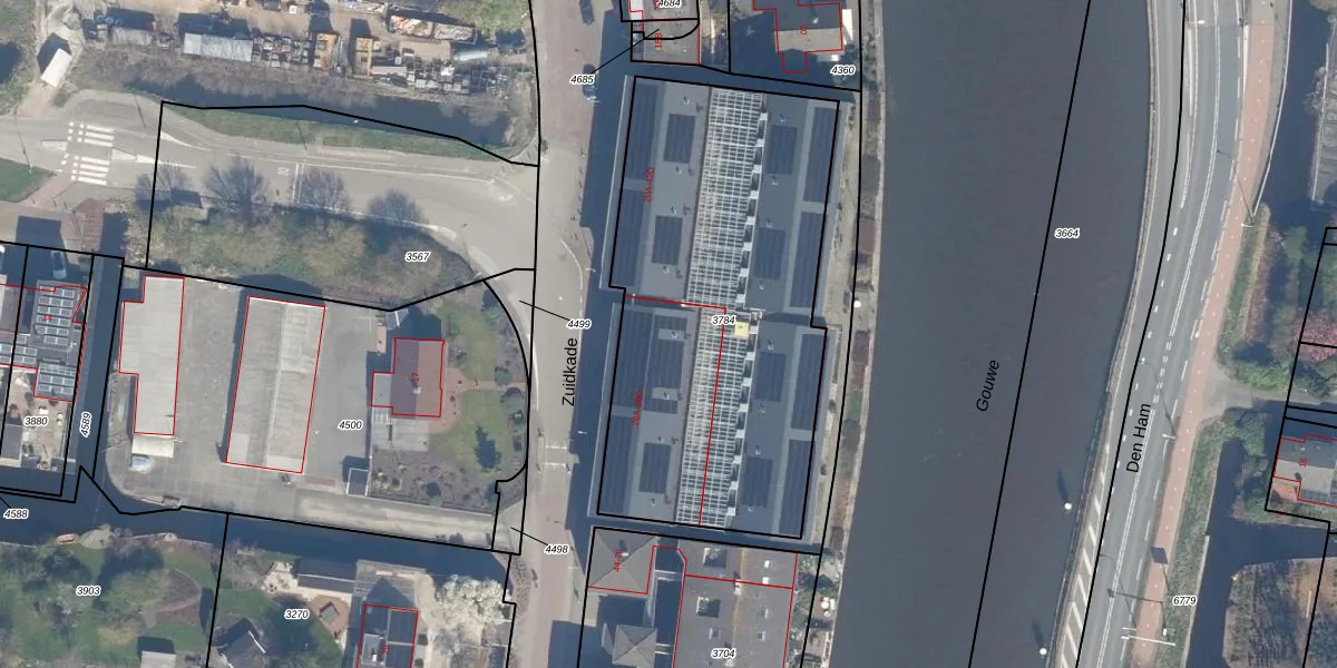 Het perceel waarop Zuidkade 38-A staat heeft een oppervlakte van 2013 m². Dit is een zeer groot perceel. De perceeloppervlakte wordt geregistreerd door het Kadaster. Gedetailleerde informatie over de maten van dit perceel kunt u vinden in het rapport Kadastrale kaart met maatvoering van Zuidkade 38-A.