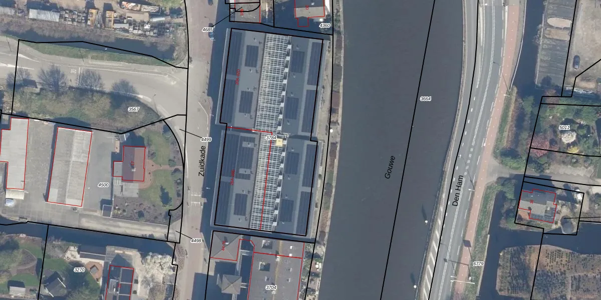 Het perceel waarop Zuidkade 42-A staat heeft een oppervlakte van 2013 m². Dit is een zeer groot perceel. De perceeloppervlakte wordt geregistreerd door het Kadaster. Gedetailleerde informatie over de maten van dit perceel kunt u vinden in het rapport Kadastrale kaart met maatvoering van Zuidkade 42-A.