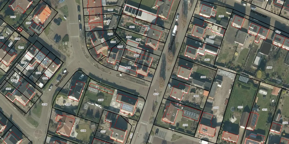 Beatrixstraat 21 is gelegen op kadastraal perceel HVN00G3838. Deze kadastrale aanduiding is uniek en wordt gebruikt door het Kadaster om eigendomsrechten en andere zakelijke rechten vast te leggen. Het perceel maakt onderdeel uit van de kadastrale gemeente Hoeven.