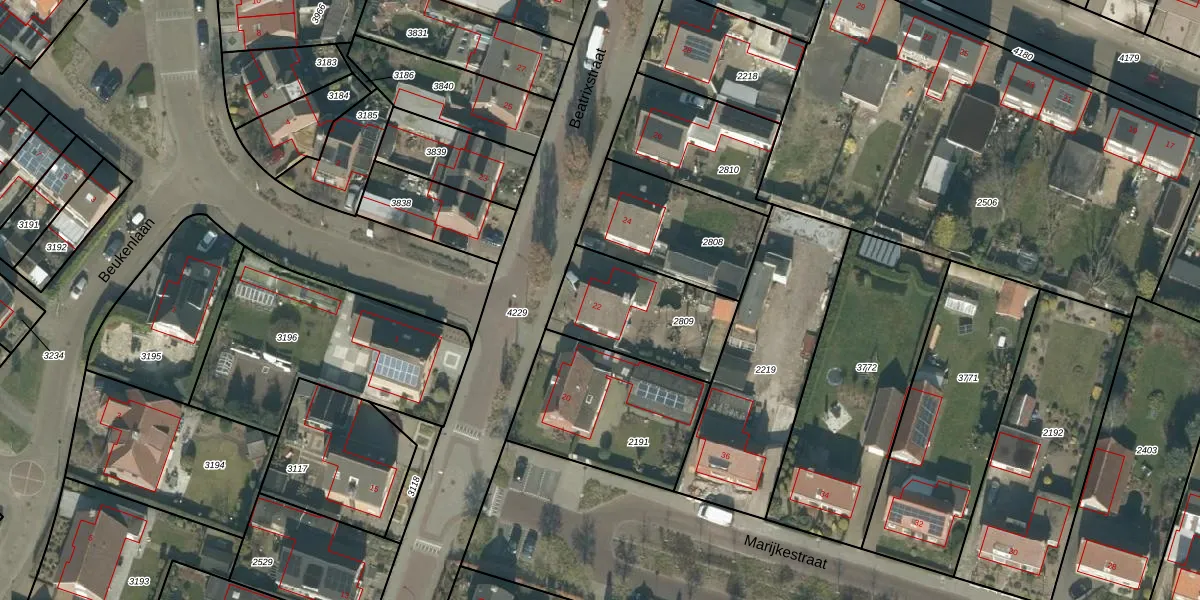 Het perceel waarop Beatrixstraat 22 staat heeft een oppervlakte van 420 m². Dit is een groot perceel. De perceeloppervlakte wordt geregistreerd door het Kadaster. Gedetailleerde informatie over de maten van dit perceel kunt u vinden in het rapport Kadastrale kaart met maatvoering van Beatrixstraat 22.