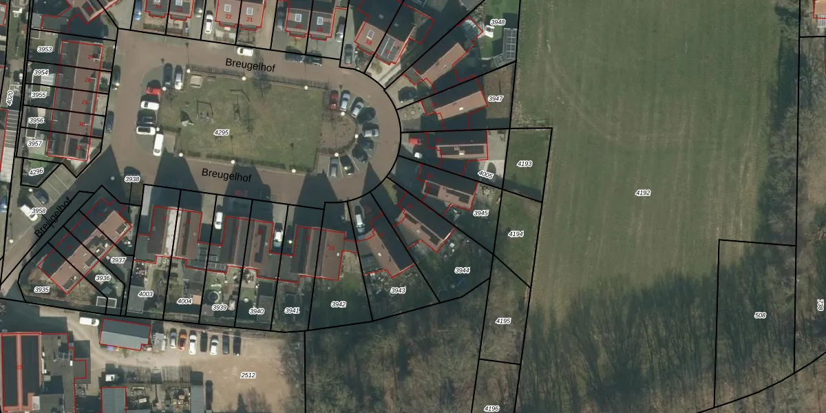 Breugelhof 12 is gelegen op kadastraal perceel HVN00G3944. Deze kadastrale aanduiding is uniek en wordt gebruikt door het Kadaster om eigendomsrechten en andere zakelijke rechten vast te leggen. Het perceel maakt onderdeel uit van de kadastrale gemeente Hoeven.