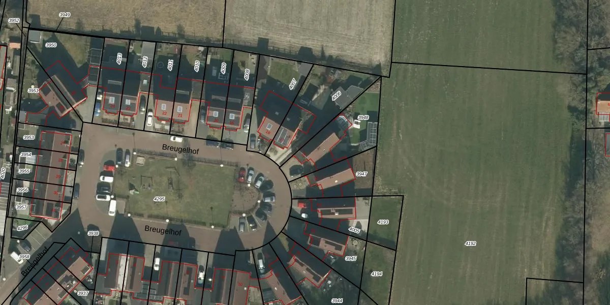 Breugelhof 16 is gelegen op kadastraal perceel HVN00G3948. Deze kadastrale aanduiding is uniek en wordt gebruikt door het Kadaster om eigendomsrechten en andere zakelijke rechten vast te leggen. Het perceel maakt onderdeel uit van de kadastrale gemeente Hoeven.