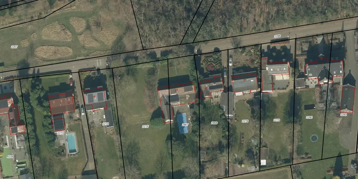 Het adres is gelegen op perceel 2867 in de sectie G en de kadastrale gemeente Hoeven. De kadastrale aanduiding is aldus HVN00-G-2867. De gemiddelde perceelgrootte in Hoeven is 4393,45 m². Dit perceel is kleiner: de perceeloppervlakte bedraagt 1120 m². De grootste perceeloppervlakte in de kadastrale gemeente is 33,1 ha. De kleinste oppervlakte bedraagt 0 m². Dit is het enige adres dat aanwezig is op het perceel. De laatste wijziging in het de Basisregistratie Kadaster (BRK) was op 28-10-2015.