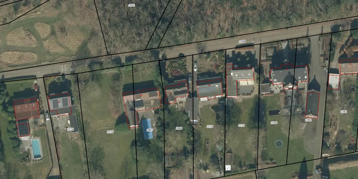 Het adres is gelegen op perceel 2868 in de sectie G en de kadastrale gemeente Hoeven. De kadastrale aanduiding is aldus HVN00-G-2868. Het perceel is kleiner dan gemiddeld in Hoeven. Het perceel is 1180 m² groot, terwijl het gemiddelde ligt op 4393,45 m². Het kleinste perceel in de kadastrale gemeente is 0 m² groot. De grootste perceeloppervlakte is 33,1 ha. Dit is het enige adres dat aanwezig is op het perceel. De laatste wijziging in het de Basisregistratie Kadaster (BRK) was op 28-10-2015.