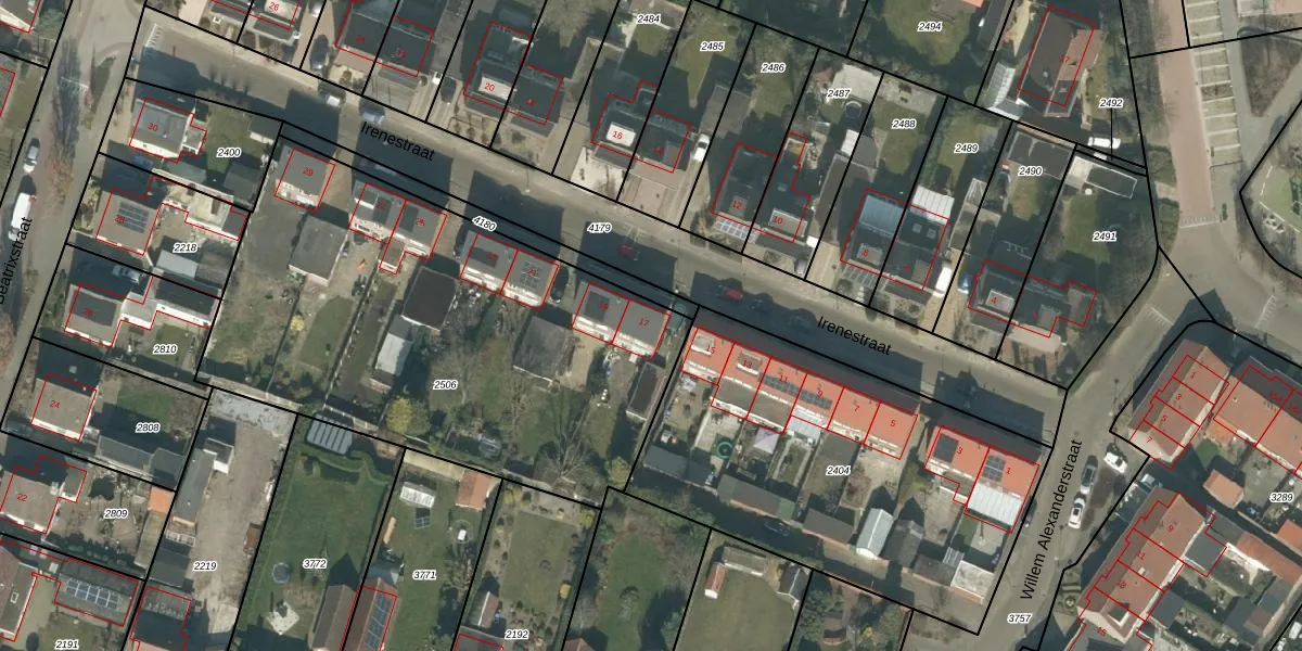Irenestraat 17 is gelegen op kadastraal perceel HVN00G2506. Deze kadastrale aanduiding is uniek en wordt gebruikt door het Kadaster om eigendomsrechten en andere zakelijke rechten vast te leggen. Het perceel maakt onderdeel uit van de kadastrale gemeente Hoeven.
