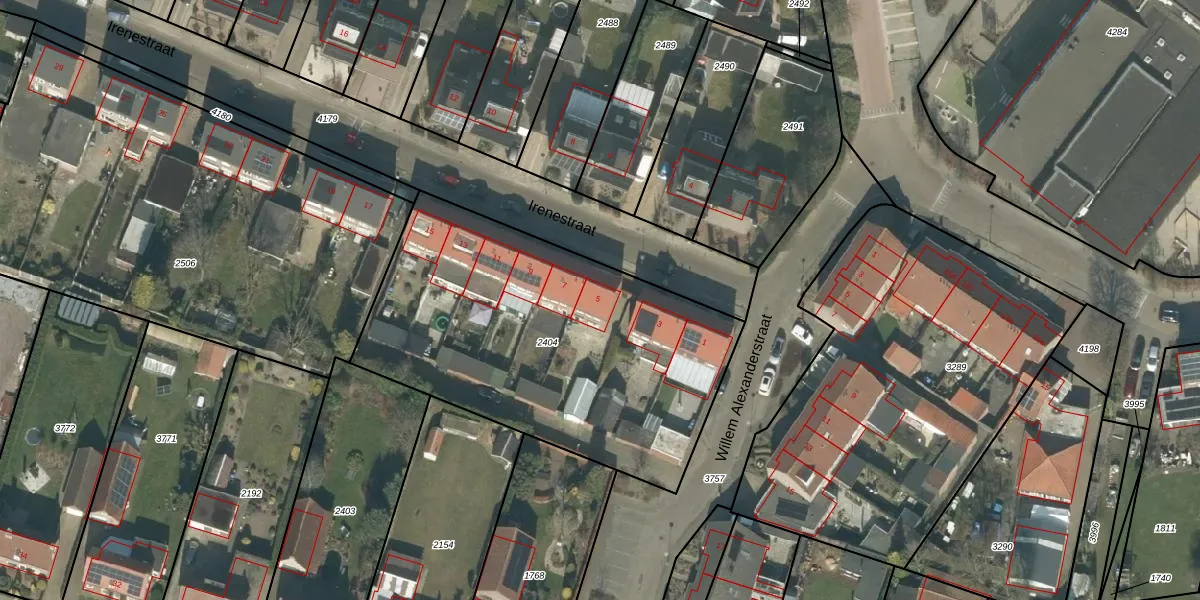 Irenestraat 5 is gelegen op kadastraal perceel HVN00G2404. Deze kadastrale aanduiding is uniek en wordt gebruikt door het Kadaster om eigendomsrechten en andere zakelijke rechten vast te leggen. Het perceel maakt onderdeel uit van de kadastrale gemeente Hoeven.