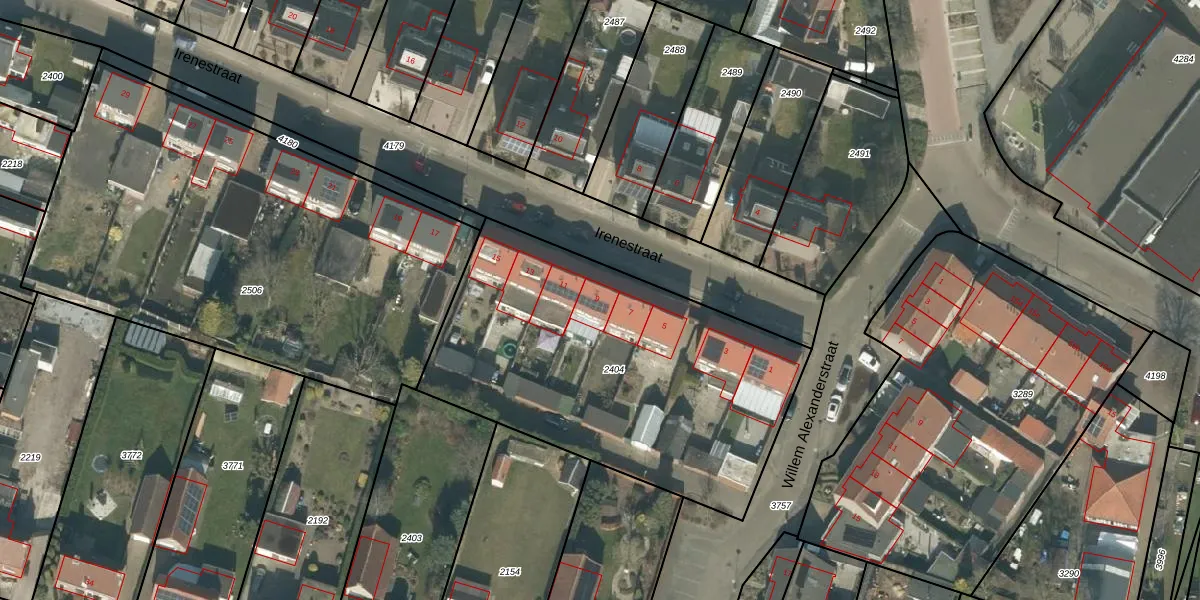 Irenestraat 9 is gelegen op kadastraal perceel HVN00G2404. Deze kadastrale aanduiding is uniek en wordt gebruikt door het Kadaster om eigendomsrechten en andere zakelijke rechten vast te leggen. Het perceel maakt onderdeel uit van de kadastrale gemeente Hoeven.