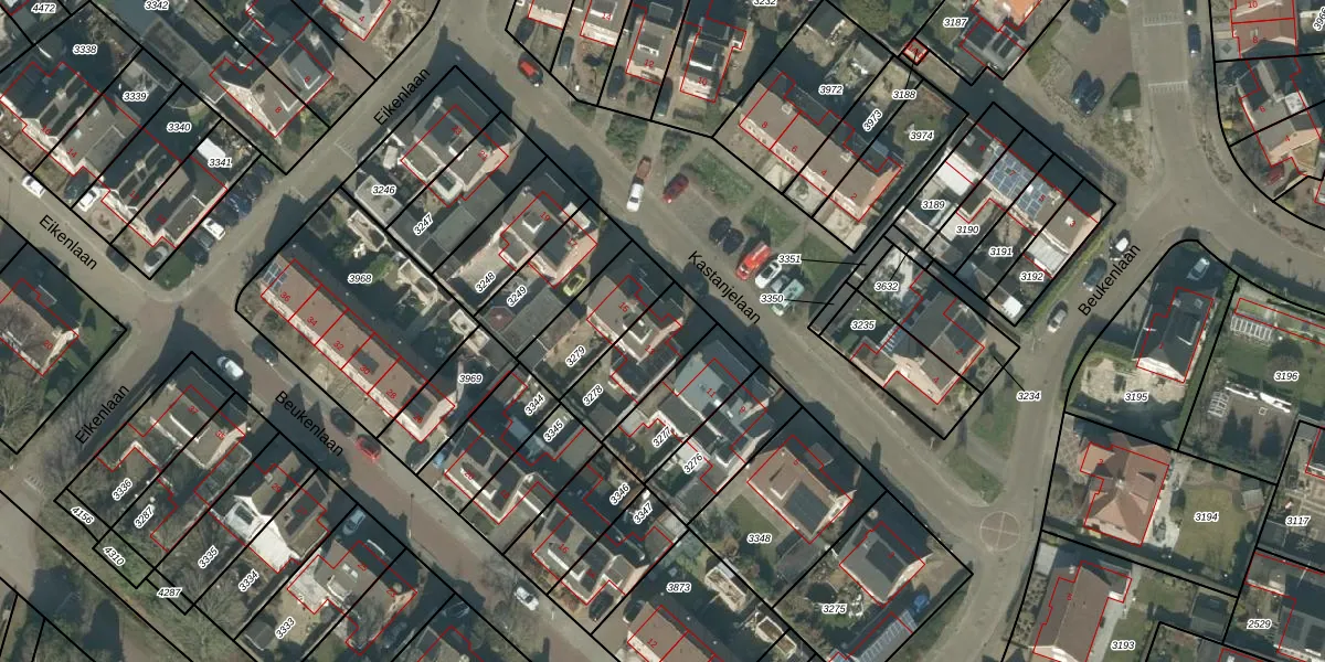 Kastanjelaan 13 is gelegen op kadastraal perceel HVN00G3278. Deze kadastrale aanduiding is uniek en wordt gebruikt door het Kadaster om eigendomsrechten en andere zakelijke rechten vast te leggen. Het perceel maakt onderdeel uit van de kadastrale gemeente Hoeven.