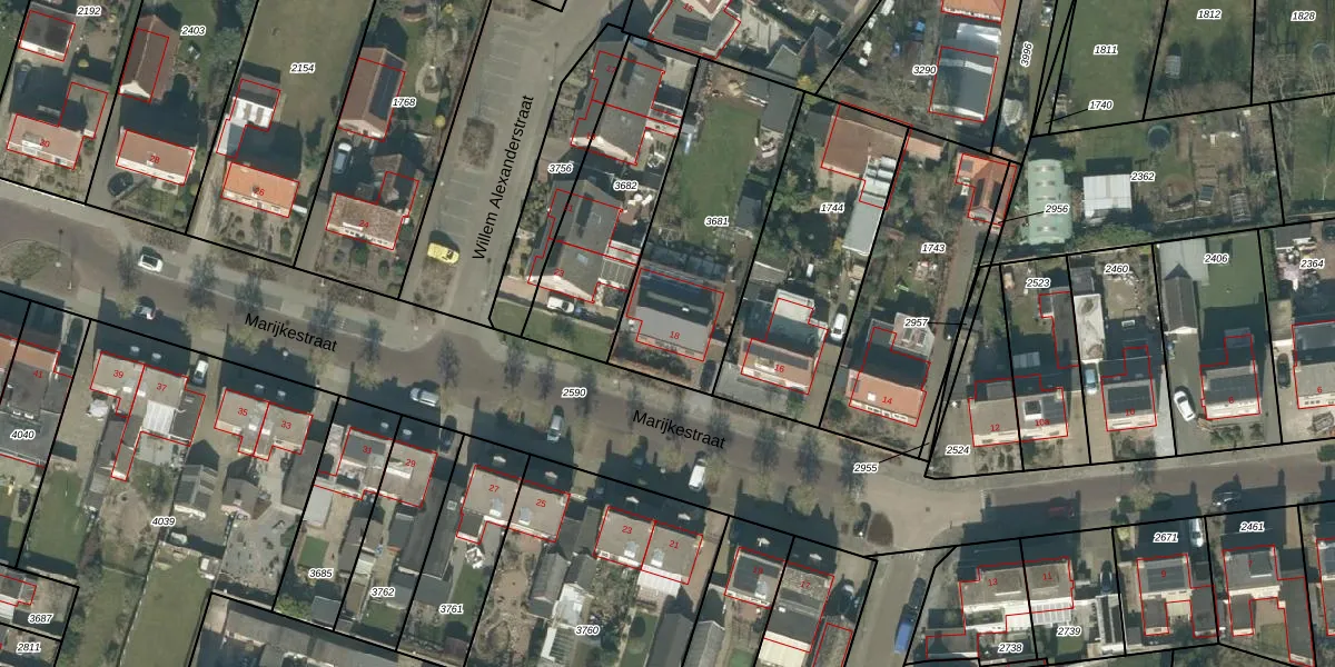 Het perceel waarop Marijkestraat 18 staat heeft een oppervlakte van 775 m². Dit is een groot perceel. De perceeloppervlakte wordt geregistreerd door het Kadaster. Gedetailleerde informatie over de maten van dit perceel kunt u vinden in het rapport Kadastrale kaart met maatvoering van Marijkestraat 18.
