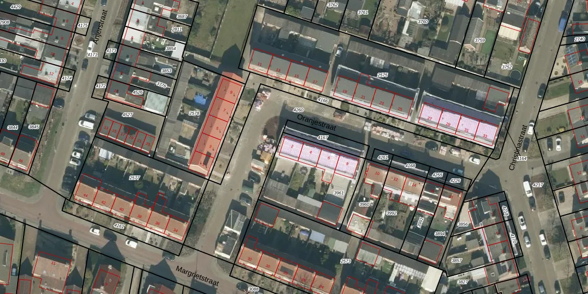 Oranjestraat 2 is gelegen op kadastraal perceel HVN00G3961. Deze kadastrale aanduiding is uniek en wordt gebruikt door het Kadaster om eigendomsrechten en andere zakelijke rechten vast te leggen. Het perceel maakt onderdeel uit van de kadastrale gemeente Hoeven.