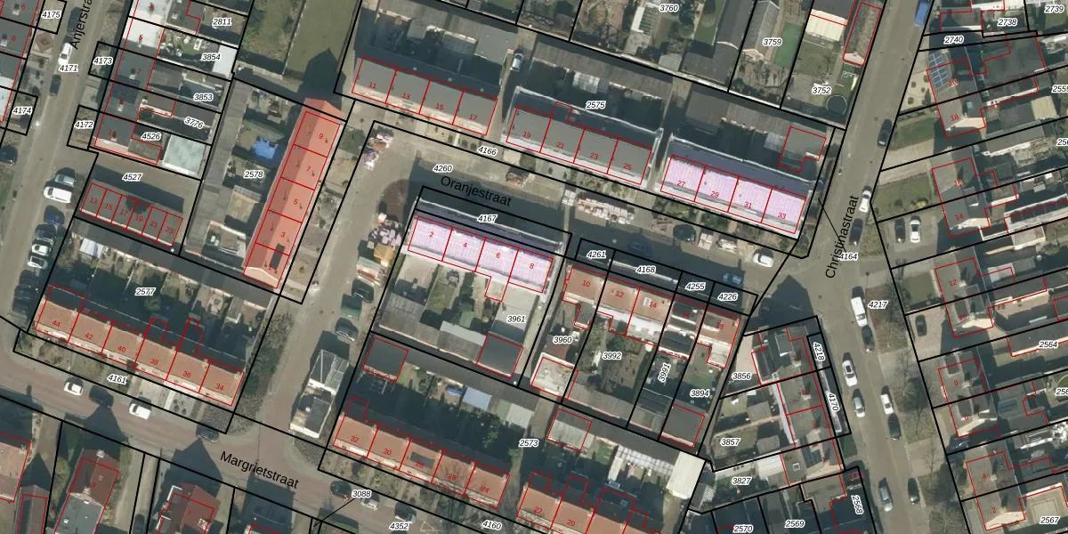 Het perceel waarop Oranjestraat 8 staat heeft een oppervlakte van 745 m². Dit is een groot perceel. De perceeloppervlakte wordt geregistreerd door het Kadaster. Gedetailleerde informatie over de maten van dit perceel kunt u vinden in het rapport Kadastrale kaart met maatvoering van Oranjestraat 8.