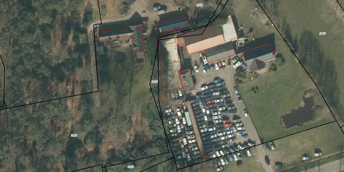 Het adres is gelegen op perceel 2417 in de sectie F en de kadastrale gemeente Hoeven. De kadastrale aanduiding is aldus HVN00-F-2417. De gemiddelde perceeloppervlakte in de kadastrale gemeente Hoeven is 4382,49 m². Dit perceel is met zijn 6598 m² dus groter dan gemiddeld. Het kleinste perceel in de kadastrale gemeente is 0 m² groot. De grootste perceeloppervlakte is 33,1 ha. Op het perceel liggen in totaal 2 adressen. De laatste wijziging in het de Basisregistratie Kadaster (BRK) was op 13-06-2024.