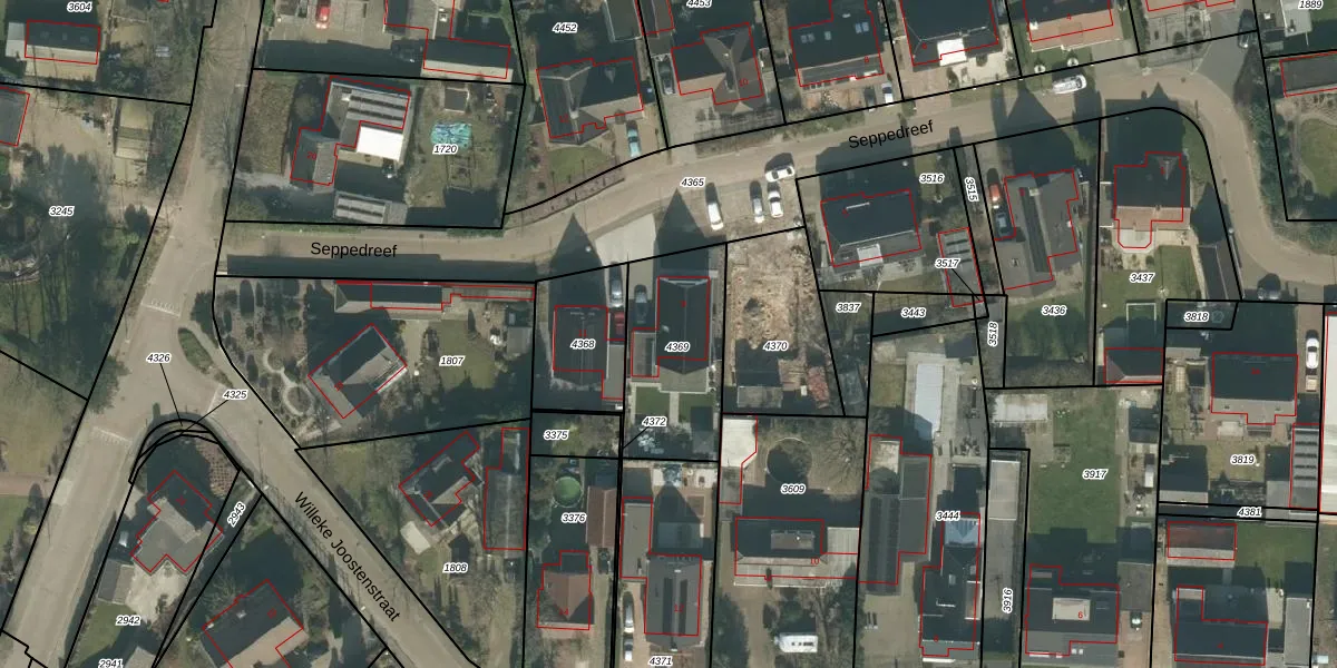 Seppedreef 9 is gelegen op kadastraal perceel HVN00G4369. Deze kadastrale aanduiding is uniek en wordt gebruikt door het Kadaster om eigendomsrechten en andere zakelijke rechten vast te leggen. Het perceel maakt onderdeel uit van de kadastrale gemeente Hoeven.