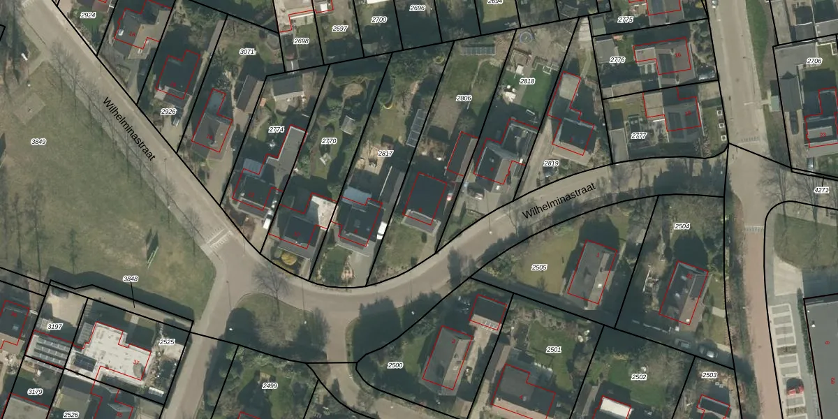 Het perceel waarop Wilhelminastraat 6 staat heeft een oppervlakte van 794 m². Dit is een groot perceel. De perceeloppervlakte wordt geregistreerd door het Kadaster. Gedetailleerde informatie over de maten van dit perceel kunt u vinden in het rapport Kadastrale kaart met maatvoering van Wilhelminastraat 6.