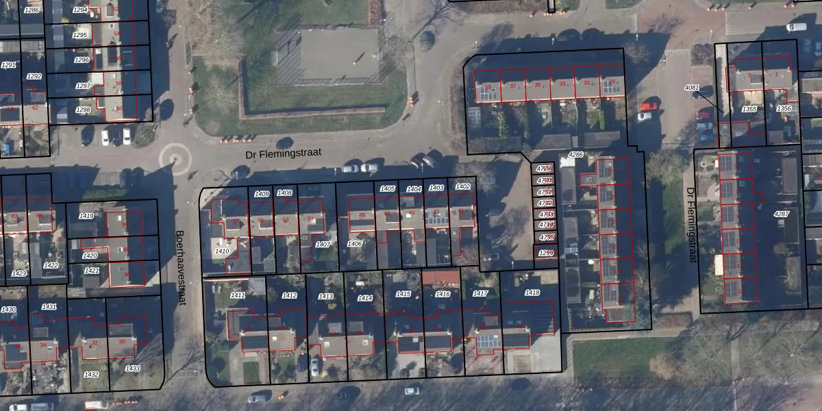 Het perceel waarop Dr Flemingstraat 45 staat heeft een oppervlakte van 130 m². Dit is een middelgroot perceel. De perceeloppervlakte wordt geregistreerd door het Kadaster. Gedetailleerde informatie over de maten van dit perceel kunt u vinden in het rapport Kadastrale kaart met maatvoering van Dr Flemingstraat 45.