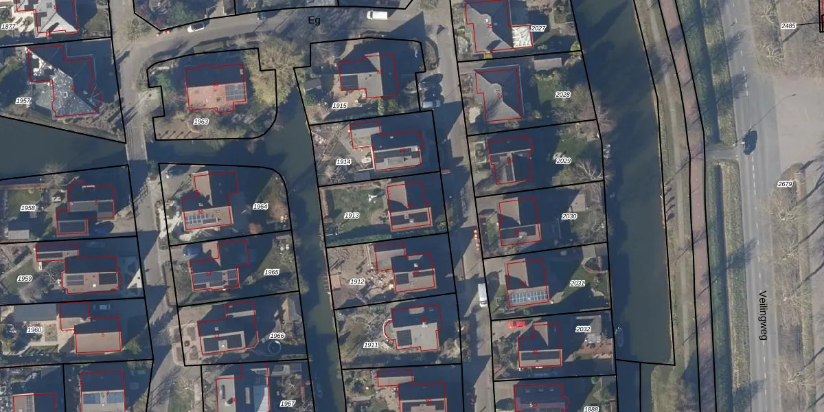 Het perceel waarop Eg 44 staat heeft een oppervlakte van 448 m². Dit is een groot perceel. De perceeloppervlakte wordt geregistreerd door het Kadaster. Gedetailleerde informatie over de maten van dit perceel kunt u vinden in het rapport Kadastrale kaart met maatvoering van Eg 44.