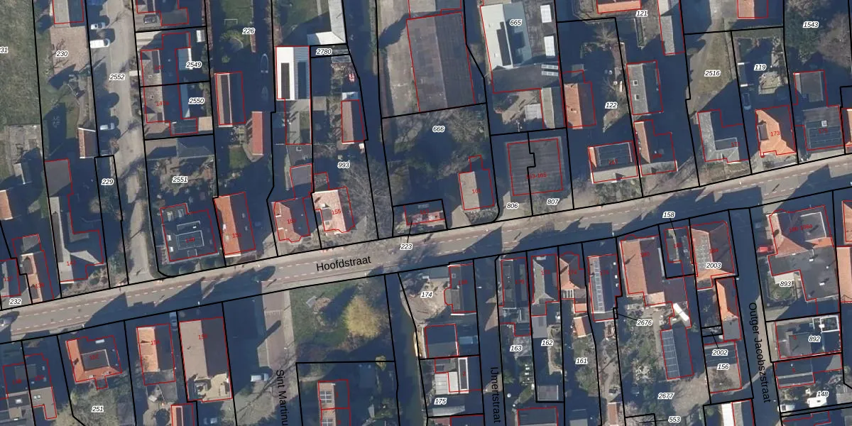 Het perceel waarop Hoofdstraat 157 staat heeft een oppervlakte van 90 m². Dit is een klein perceel. De perceeloppervlakte wordt geregistreerd door het Kadaster. Gedetailleerde informatie over de maten van dit perceel kunt u vinden in het rapport Kadastrale kaart met maatvoering van Hoofdstraat 157.
