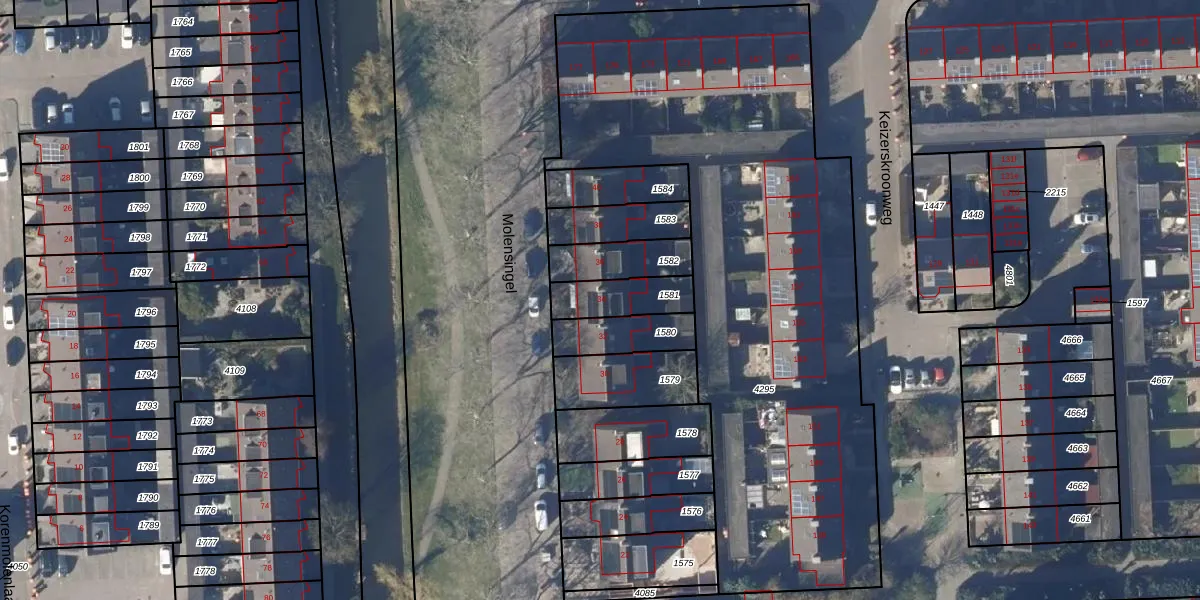 Gebruik de zoekbalk of klik op een perceel voor informatie over de adressen binnen dit perceel.