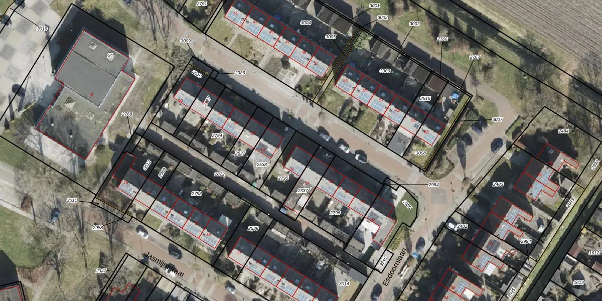 Gebruik de zoekbalk of klik op een perceel voor informatie over de adressen binnen dit perceel.
