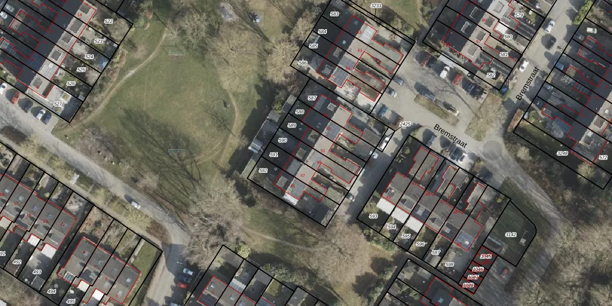 Gebruik de zoekbalk of klik op een perceel voor informatie over de adressen binnen dit perceel.